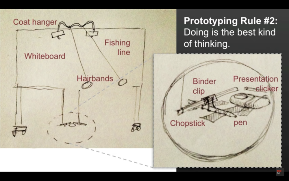 Rather than spending weeks or months developing complex (and expensive) prototypes, Chi and the Google Glass team used “materials that move at the speed of thought to maximise [their] rate of learning.” They developed another Pinnochio pretotype to test the gestures that people might use to control the glasses - using clay, hairbands, fishing line, a coat hanger, and a whiteboard: