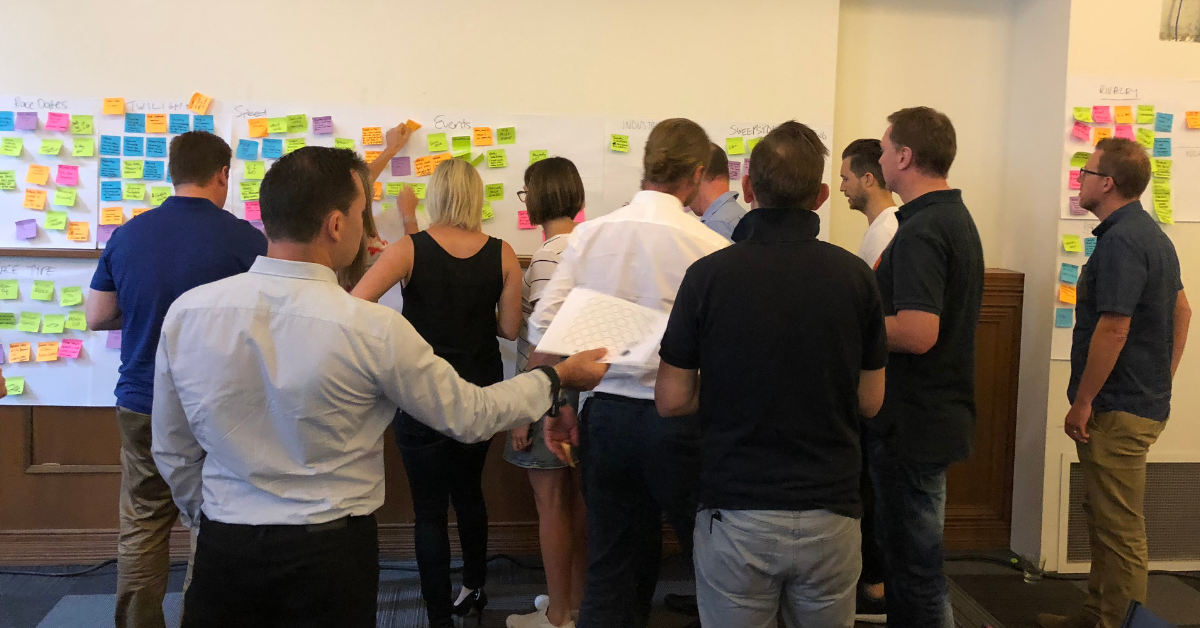 We ran a one-day hack day off-site, in order to focus Racing Victoria’s innovation team and build the foundations of pretotyping and rapid experimentation in the organisation. We gathered representatives from major wagering organisations, a commentator from the Melbourne Cup, and staff from Racing Victoria, in order to generate as many ideas as possible.